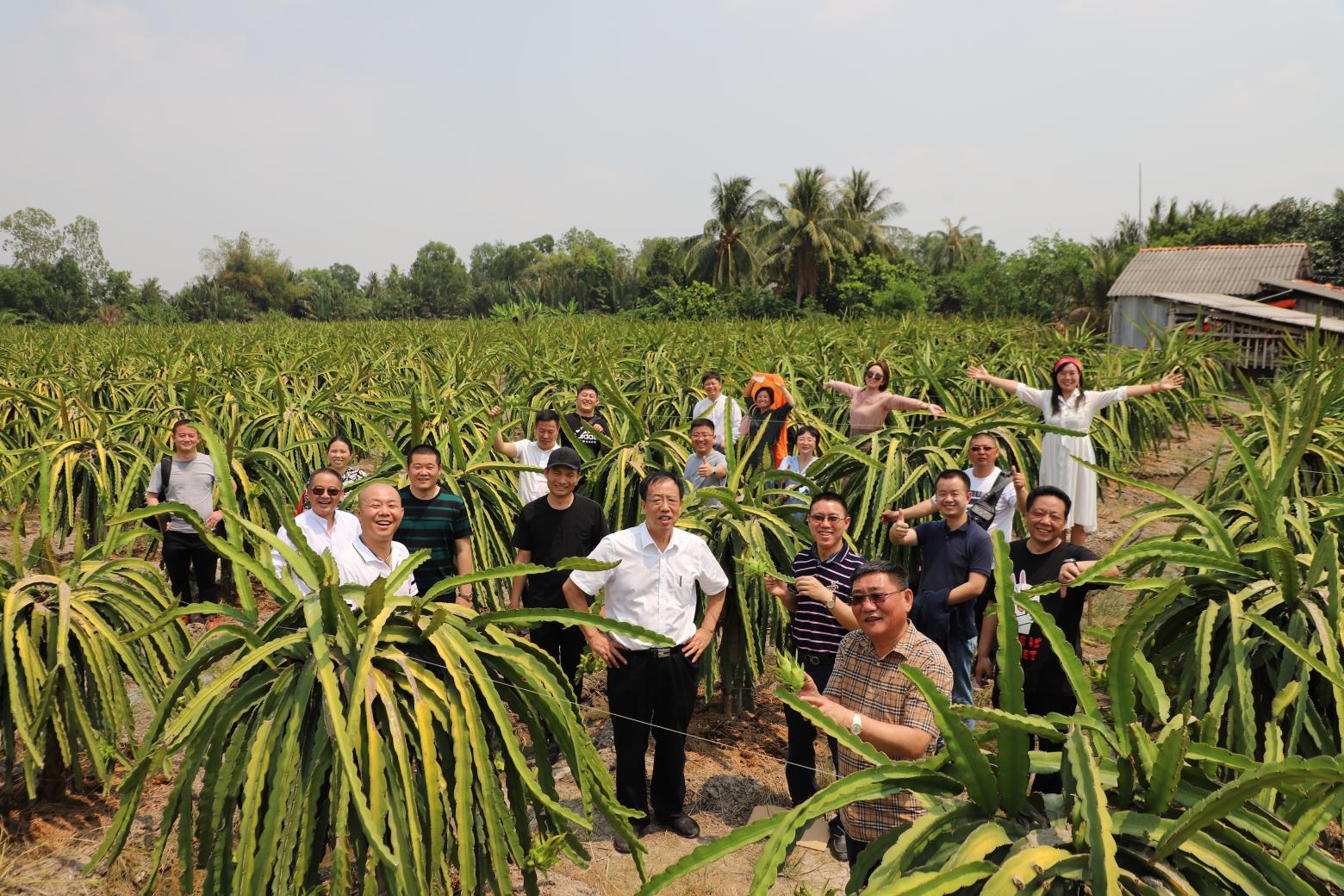 北京的采购企业代表考察越南龙驰新发地火龙果种植基地。