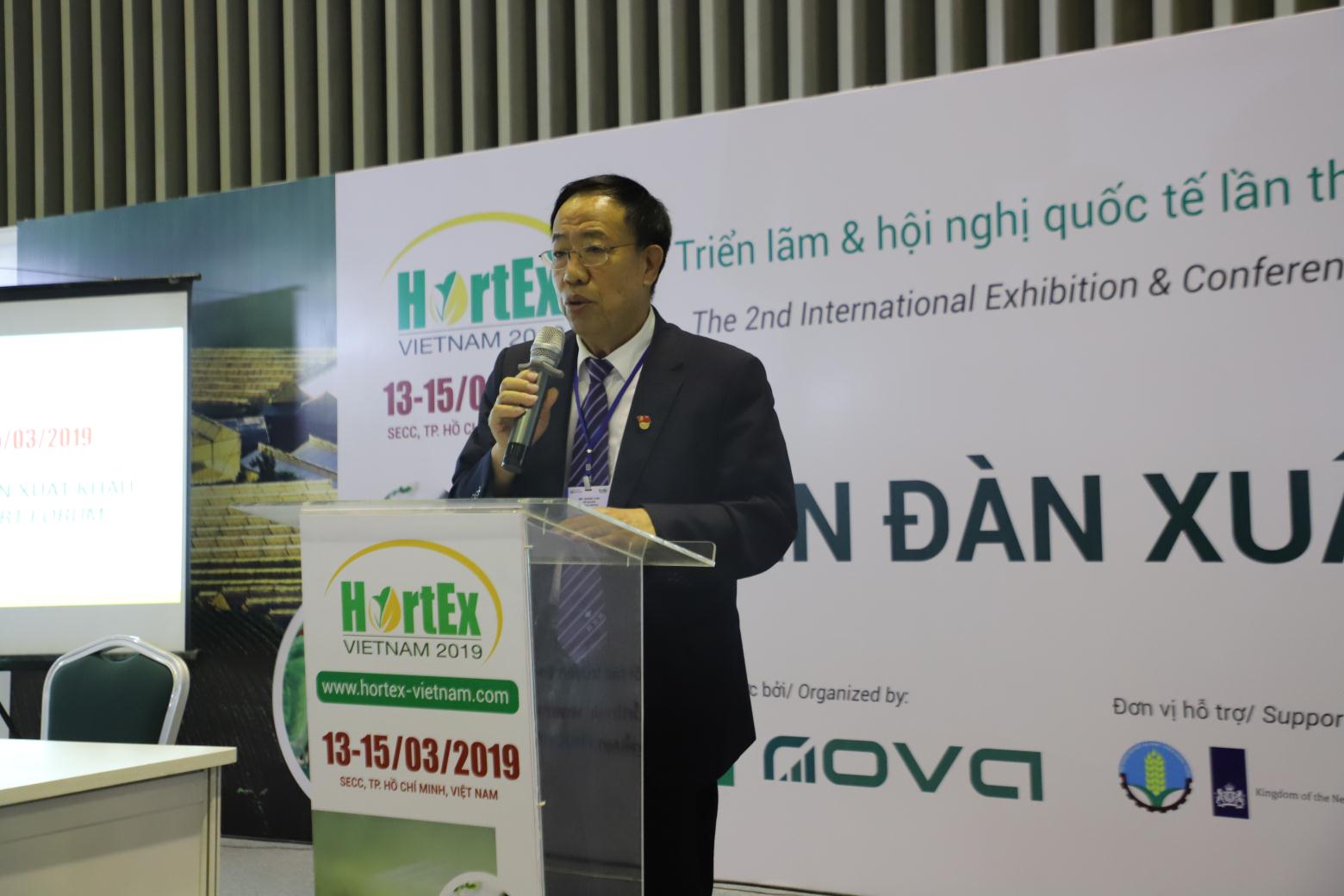 2019年3月,北京新发地董事长张玉玺在越南农产品贸易洽谈会上谈中国进口水果的需求情况。
